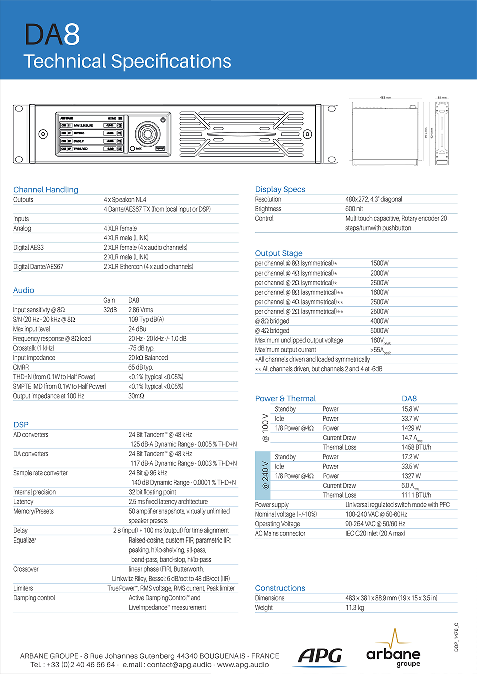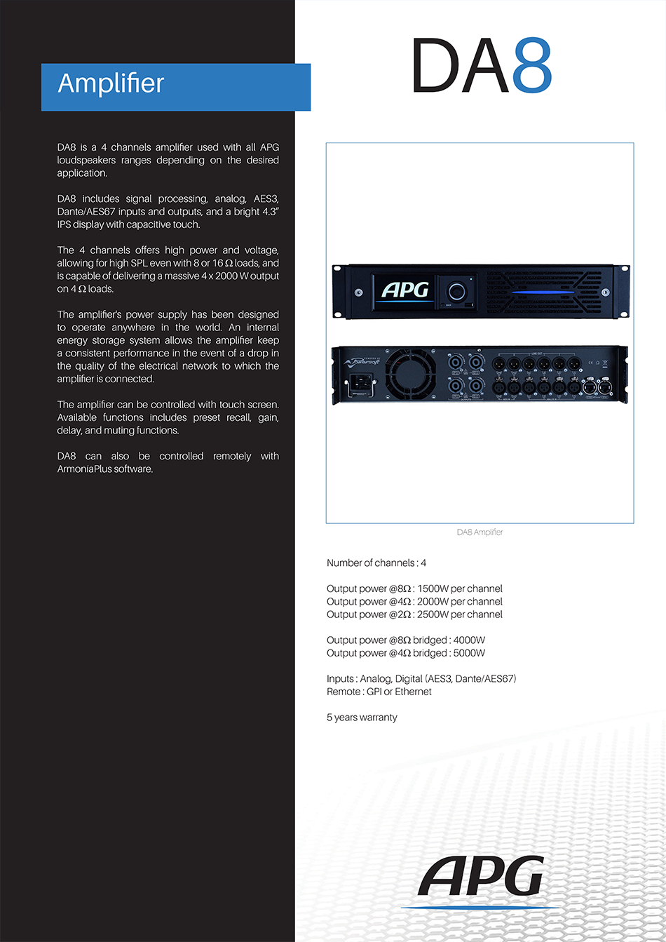 DA8은 APG 모든 스피커에 대응 할 수 있는 4 channels amplifier 입니다.