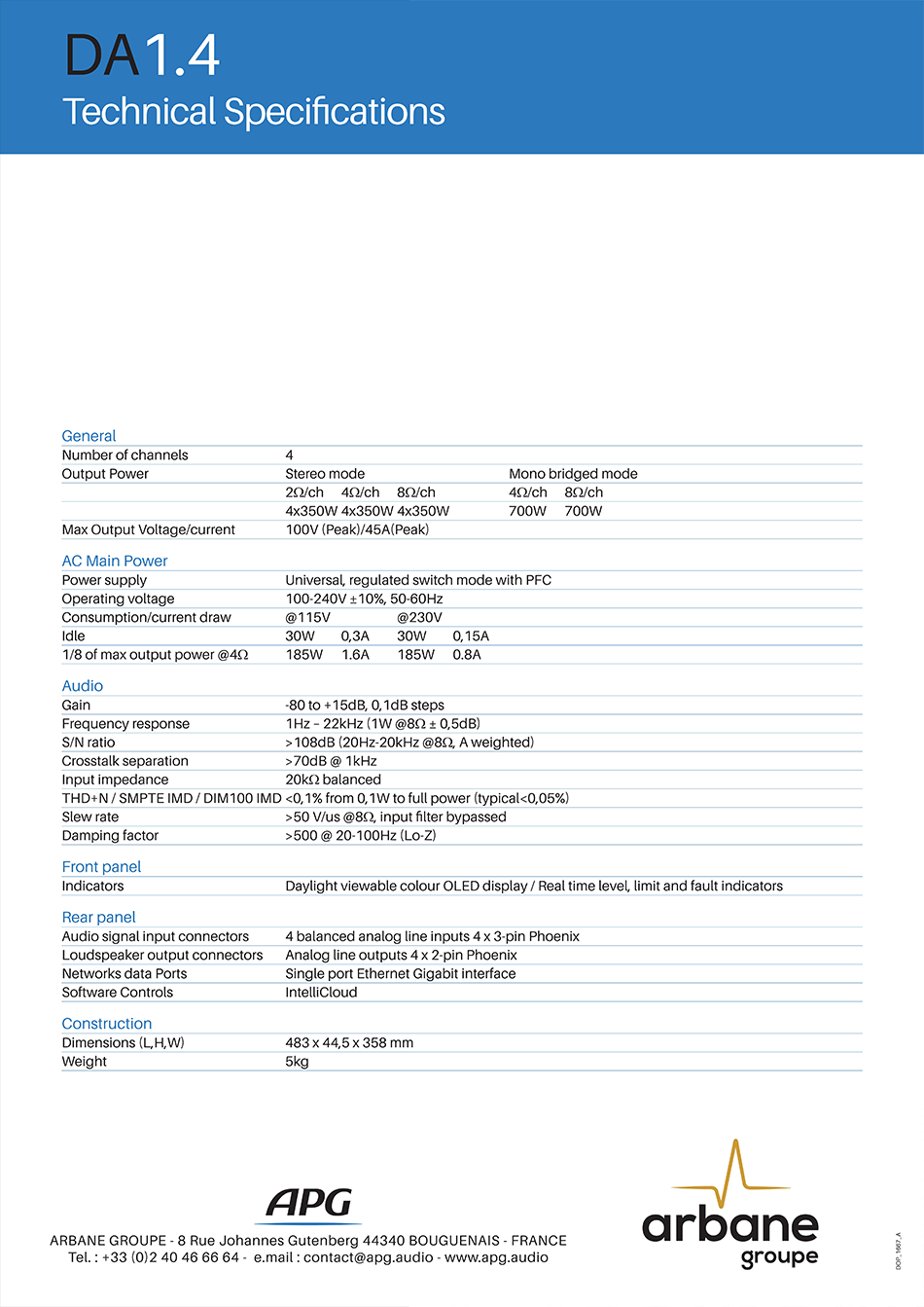 APG (Active Premium Group)는 1978년 프랑스에서 설립된 이래, 혁신적인 기술력과 엄격한 품질 관리를 바탕으로 전문 오디오 시장에 하이엔드 음향 시스템을 공급해 온 프랑스 오디오 기술의 선두 주자입니다. 설립 이래로 고품질의 음향 시스템 설계와 제조에 전념해 왔으며, "혁신적이며 기능적인 음향 솔루션"을 제공한다는 철학 아래, 전 세계의 공연장, 극장, 컨퍼런스 시설 등에 혁신적인 음향 솔루션을 제공하며 전문 오디오 분야에서 확고한 입지를 다지고 있습니다.