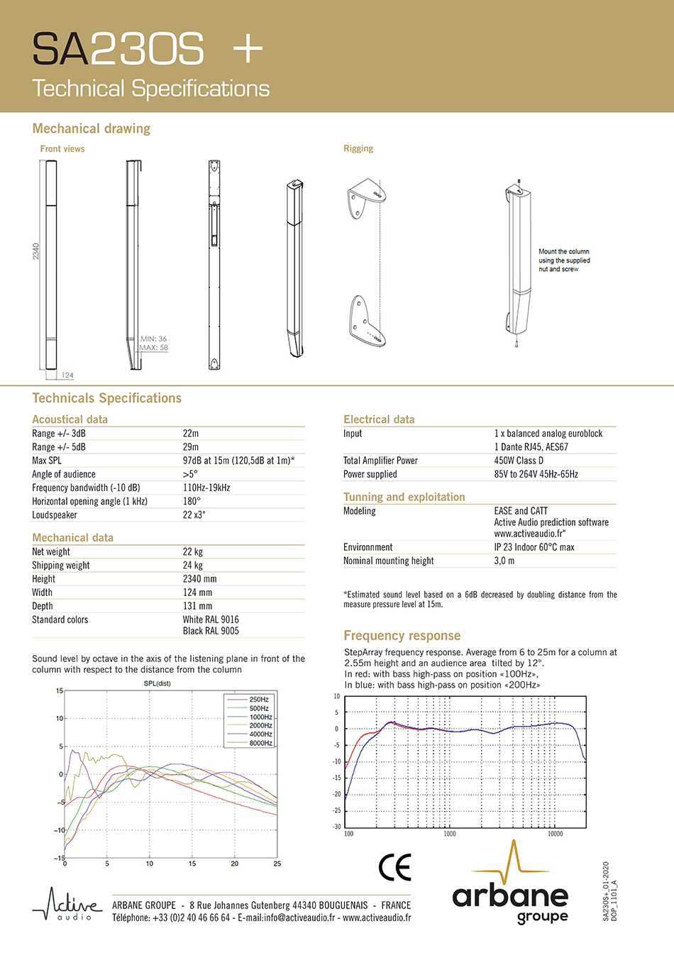 SA230S+는 중·대규모 고잔향 공간의 경사 좌석(Tilted Audience) 구역을 위한 인스톨레이션용 디지털 빔 스티어링 컬럼 스피커입니다.