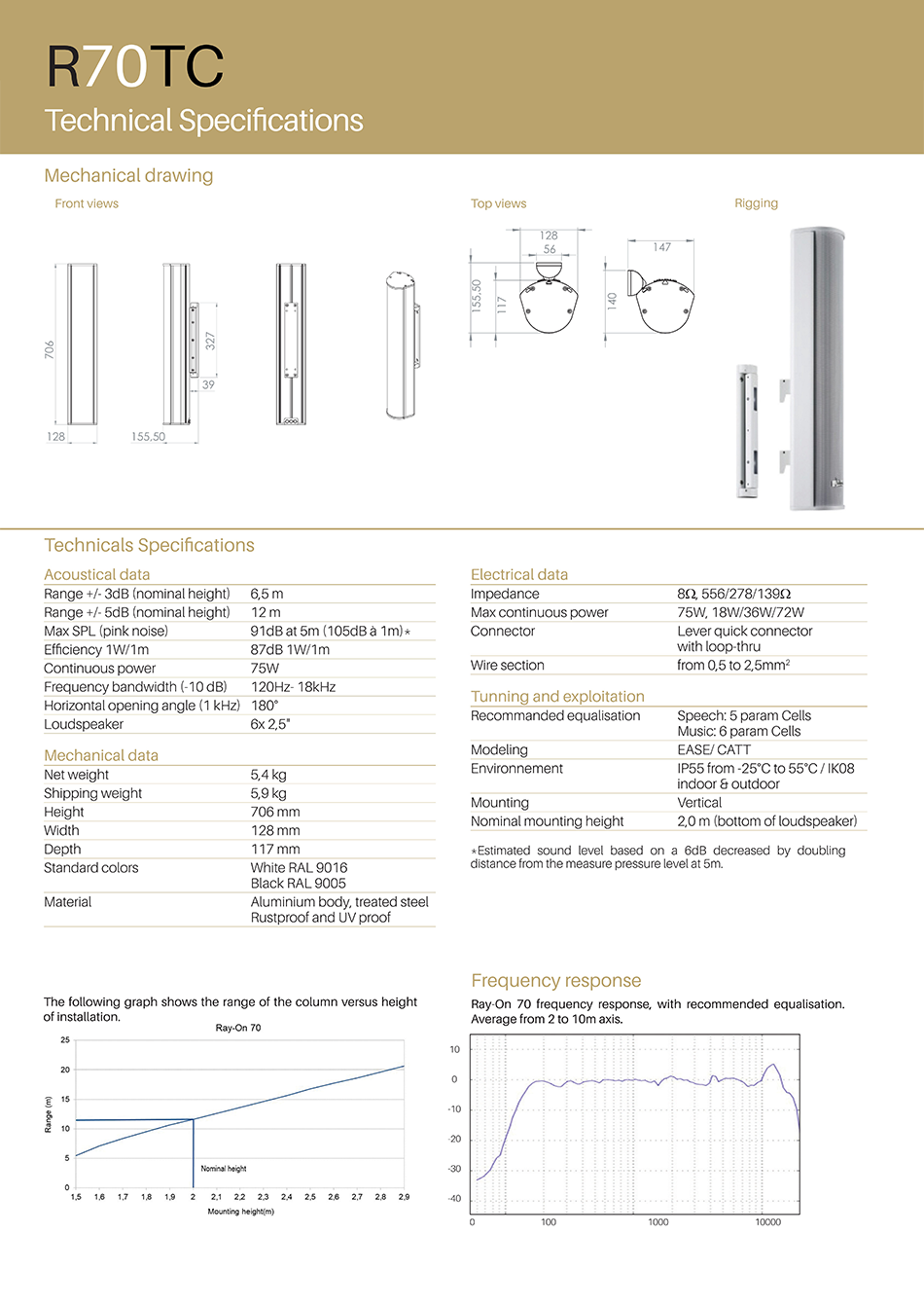 R70은 수직 설치형 70cm 패시브 컬럼형 스피커이며 외부 앰프로 구동 되는 방식입니다.