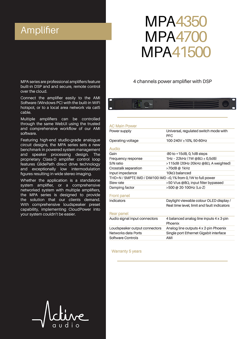 4 channels power amplifier with DSP