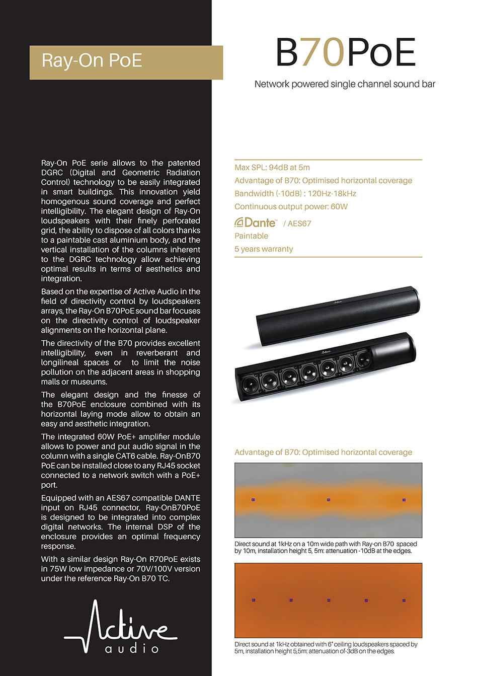 B70 PoE는 수평 설치형 70cm 액티브 컬럼으로