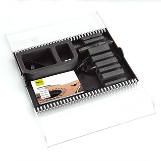The box has a transparent lid, so that the user can make sure that he has a complete kit without opening the box all the time.