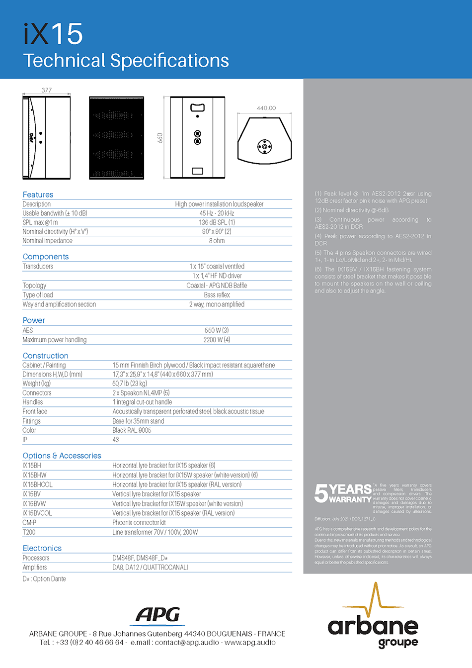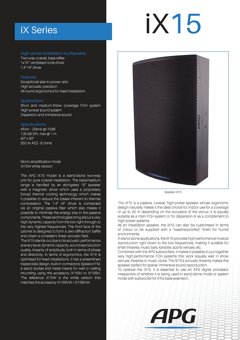 APG (Active Premium Group)는 1978년 프랑스에서 설립된 이래, 혁신적인 기술력과 엄격한 품질 관리를 바탕으로 전문 오디오 시장에 하이엔드 음향 시스템을 공급해 온 프랑스 오디오 기술의 선두 주자입니다. 설립 이래로 고품질의 음향 시스템 설계와 제조에 전념해 왔으며, "혁신적이며 기능적인 음향 솔루션"을 제공한다는 철학 아래, 전 세계의 공연장, 극장, 컨퍼런스 시설 등에 혁신적인 음향 솔루션을 제공하며 전문 오디오 분야에서 확고한 입지를 다지고 있습니다.
