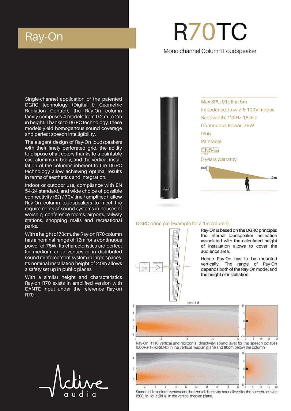 R70은 수직 설치형 70cm 패시브 컬럼형 스피커이며 외부 앰프로 구동 되는 방식입니다.