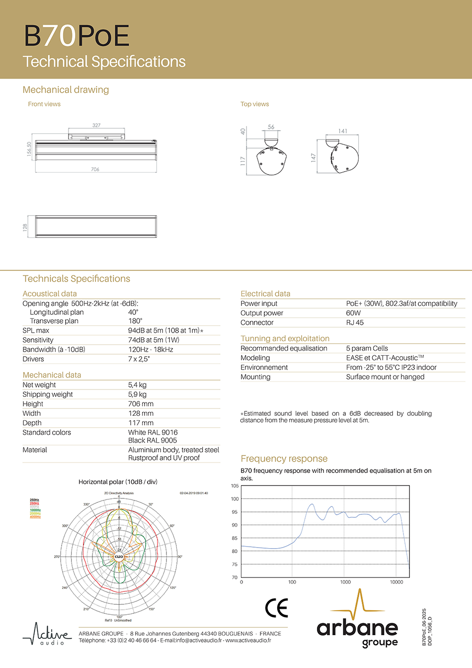 B70 PoE는 수평 설치형 70cm 액티브 컬럼으로